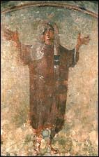 Die vroegste Christene het nie gekniel as hulle bid nie, eerder gestaan. Kniel om te bid het eers in die sewende eeu na Jesus ontwikkel. Een van die vroegste beelde in mosaïek beeld uit hoe die Christene gebid het.